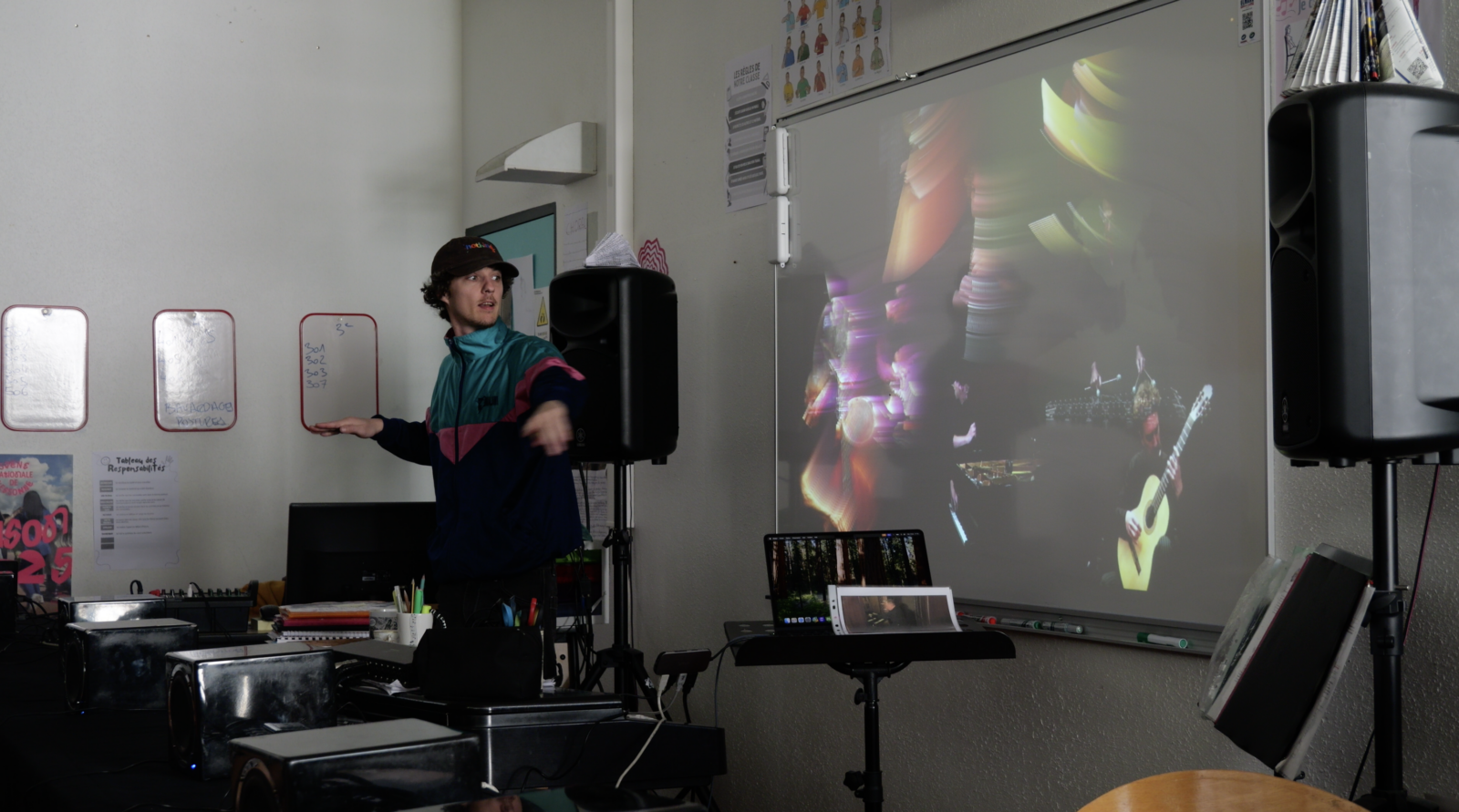 Le 7 avril dernier, Serge de Laubier accompagnait au Méta-Instrument N°4, un orchestre numérique composé d’élèves du collège Collège Paul Éluard à Evry-Courcouronnes (91), sous la direction des gestes de « sound painting » du musicien Nicolas Rivière. Ensemble, avec les élèves, ils ont mené des séances d’improvisation musicales à partir de la collection d’instruments disponibles via l’application Mono-Ovisir.